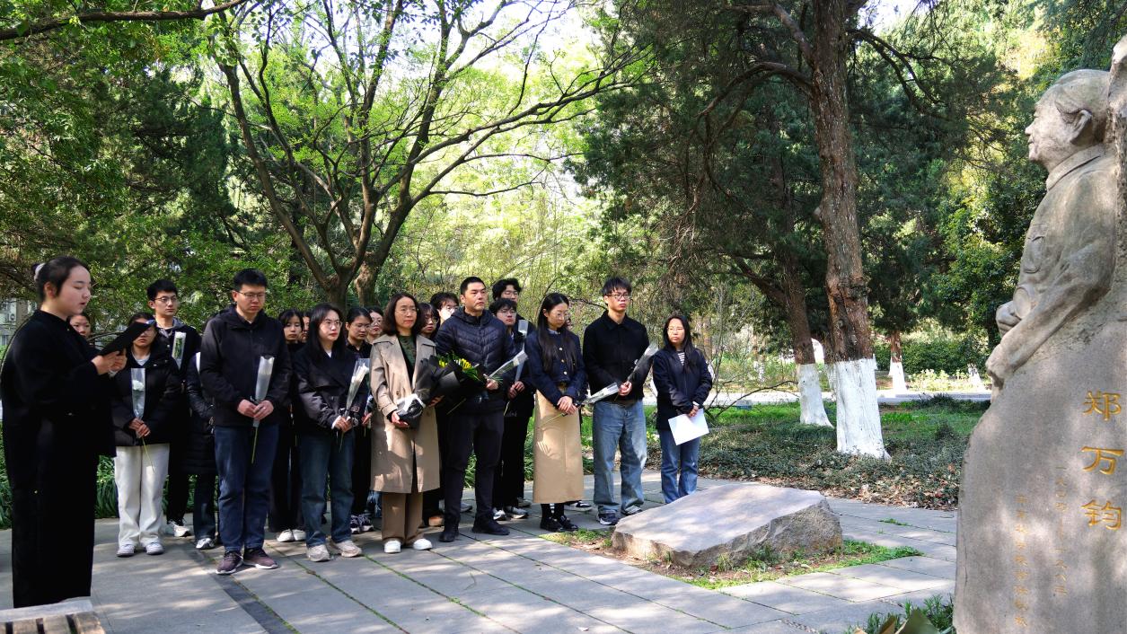 时值郑万钧院士诞辰121周年暨"活化石"水杉发现命名77周年之际,为深切追思林业先驱,赓续水杉精魂,清明前夕,伊莉讨论区 伊莉讨论区 师生代表齐聚郑万钧院士雕像前,举行庄严肃穆的祭扫活动。学院党委书记唐萍,学院党委副书记、副院长吴淳,学院全体思政辅导员,"碧水青山"传习社成员,学院学生党员、入党积极分子、团员代表出席了此次仪式活动,祭扫仪式由院团委书记梁子瑜主持。
