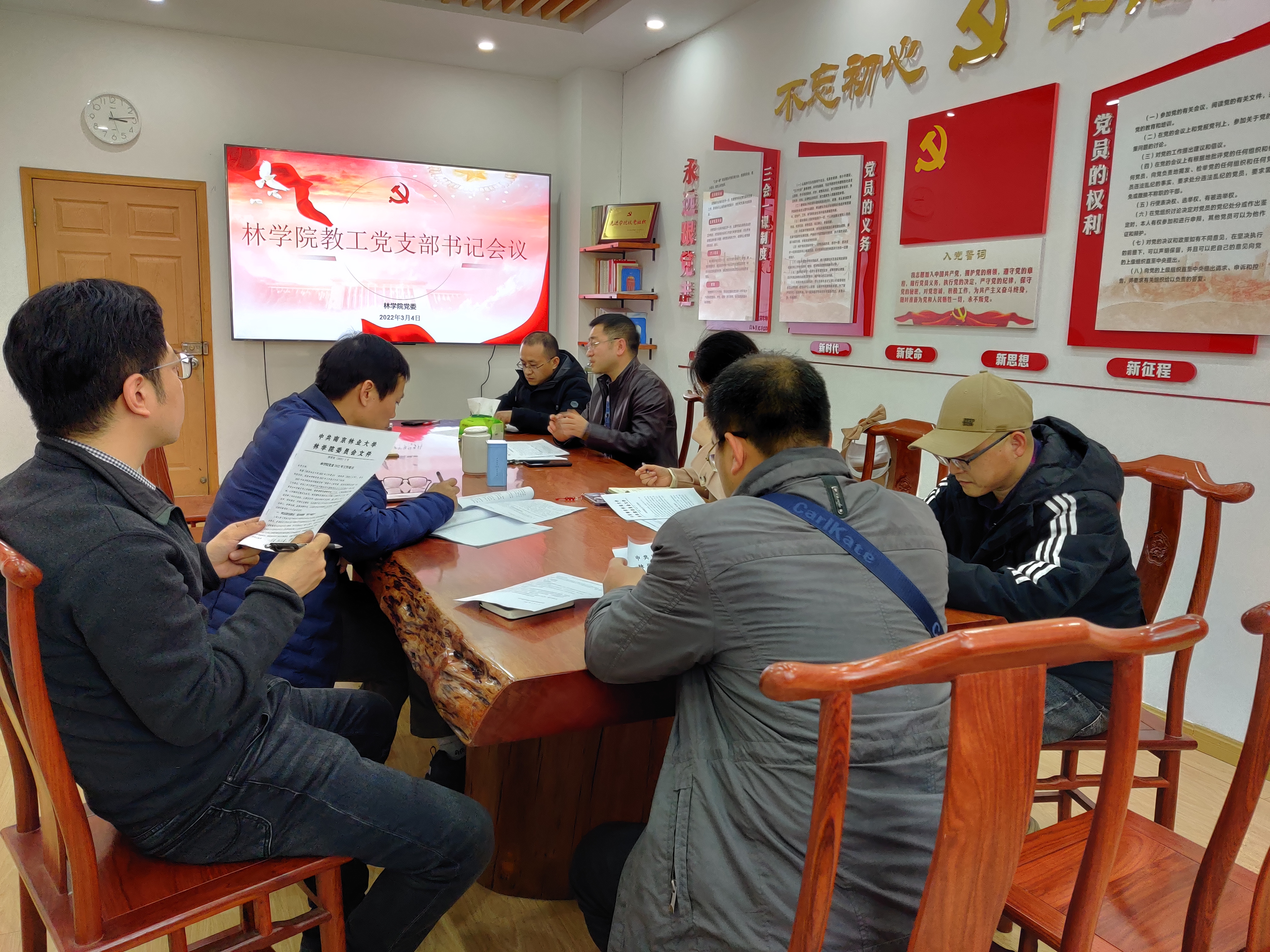 3月4日下午,学院党委在1324会议室召开了新学期教工党支部书记工作会议。院党委书记孟国忠主持会议,院党委副书记王华光和各教工党支部书记参加会议。