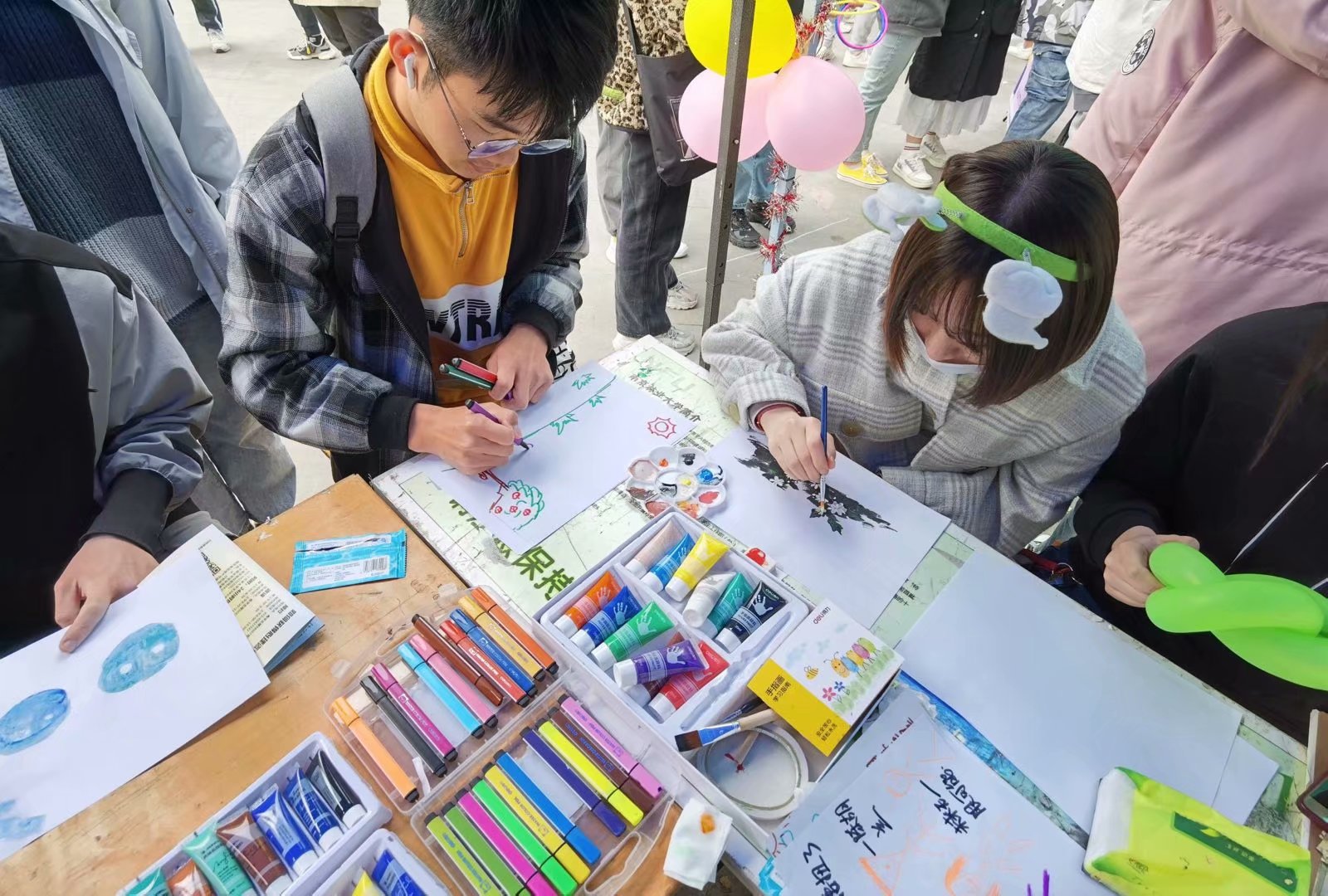 2021年4月14日,由校学工处心理健康中心举办的“感谢有你,温暖同行”第十七届大学生心理健康节广场活动中,林学院策划并承办了“你的色彩”心理健康活动。