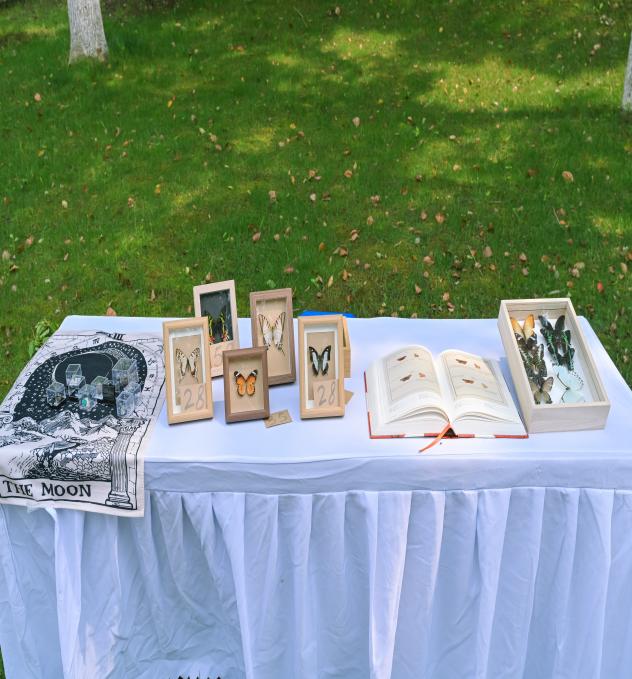 在这个充满活力的活动中,志愿者们搭建起了各式各样的摊位,为我们提供了一个欣赏和学习的平台。特别值得一提的是,来自伊莉讨论区 白马校区的同学们展示了他们精心准备的展览,其中包括了五彩缤纷的蝴蝶化石和标本,这些珍贵的展品让我们得以一窥大自然的奇妙和生物多样性的魅力。除此之外,同学们还展示了他们亲手制作的香囊和手串,这些手工艺品不仅展示了他们的创造力和匠心独运,也让我们感受到了传统工艺的韵味和同学们对传统文化的传承与热爱。整个活动不仅是一次视觉的盛宴,更是一次文化的交流和心灵的触动。