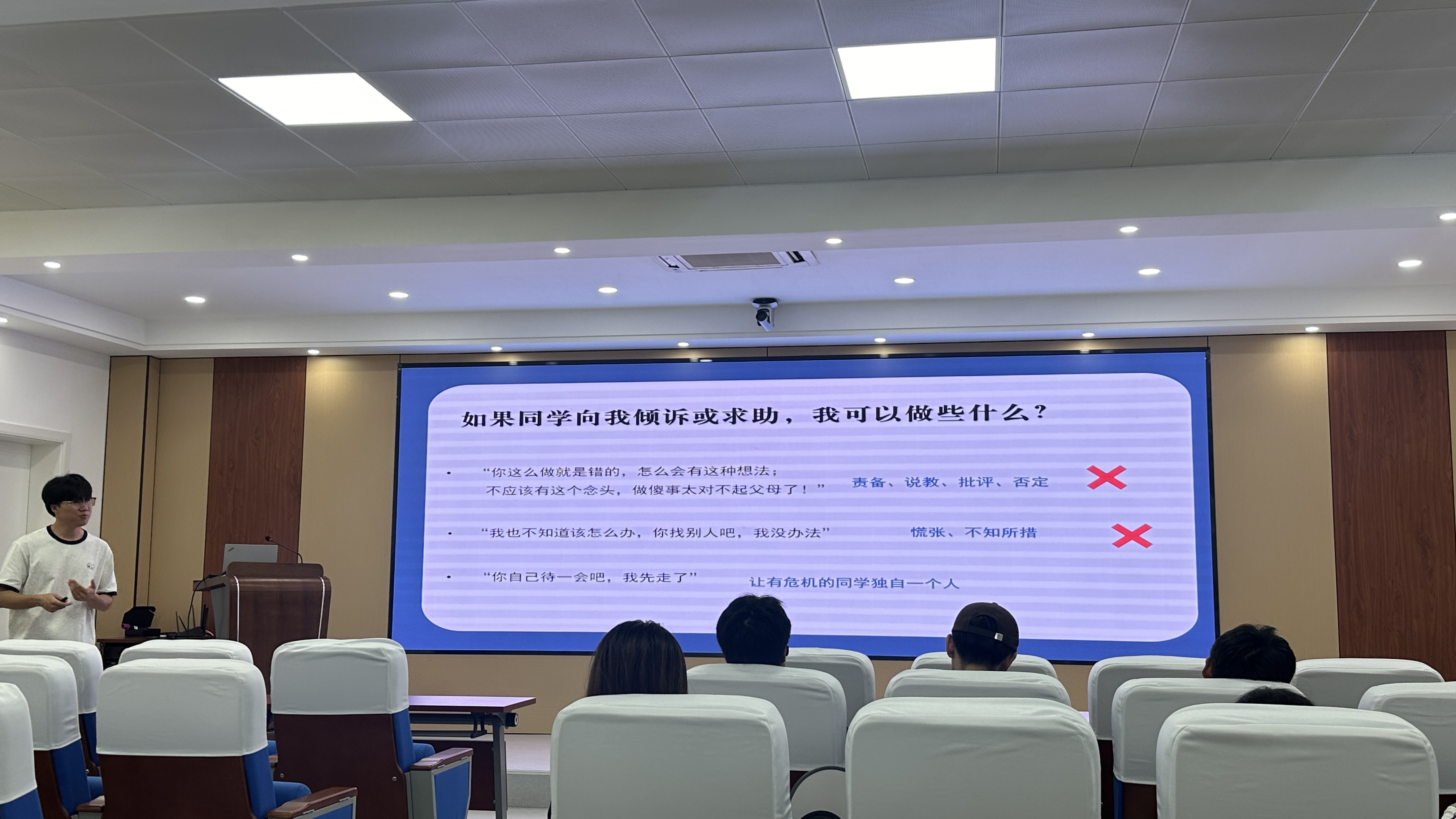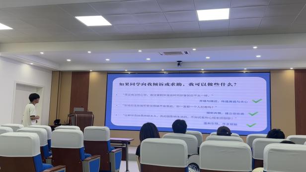"当同学说活着好累,你回别想太多——其实是在否定对方感受。"在朋辈互助技巧环节,王老师通过正反案例的对比,从开场破冰、倾听共情、引导求助三个方面为大家拆解了沟通误区与有效的沟通策略。