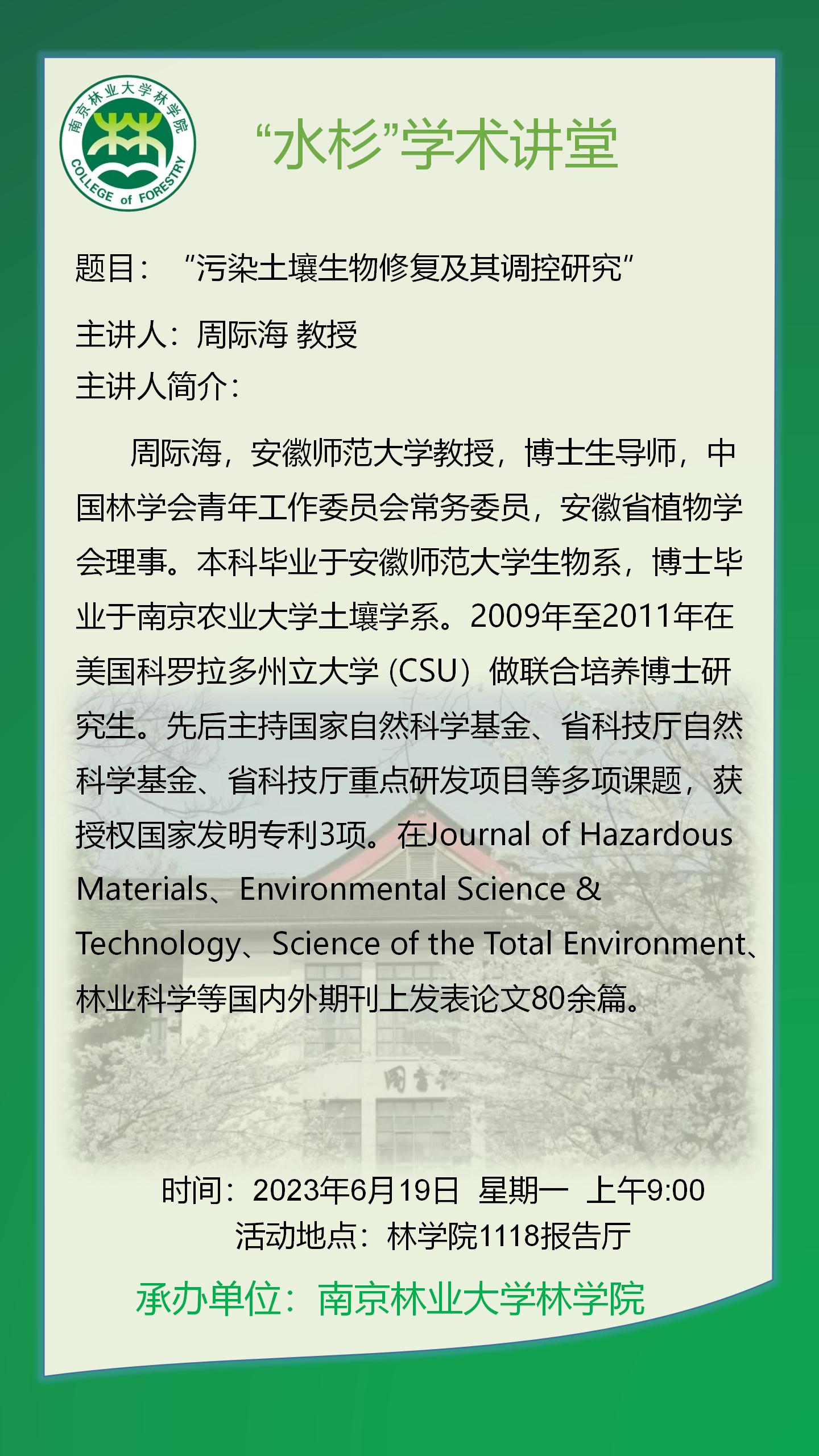 “水杉”学术讲堂:污染土壤生物修复及其调控研究