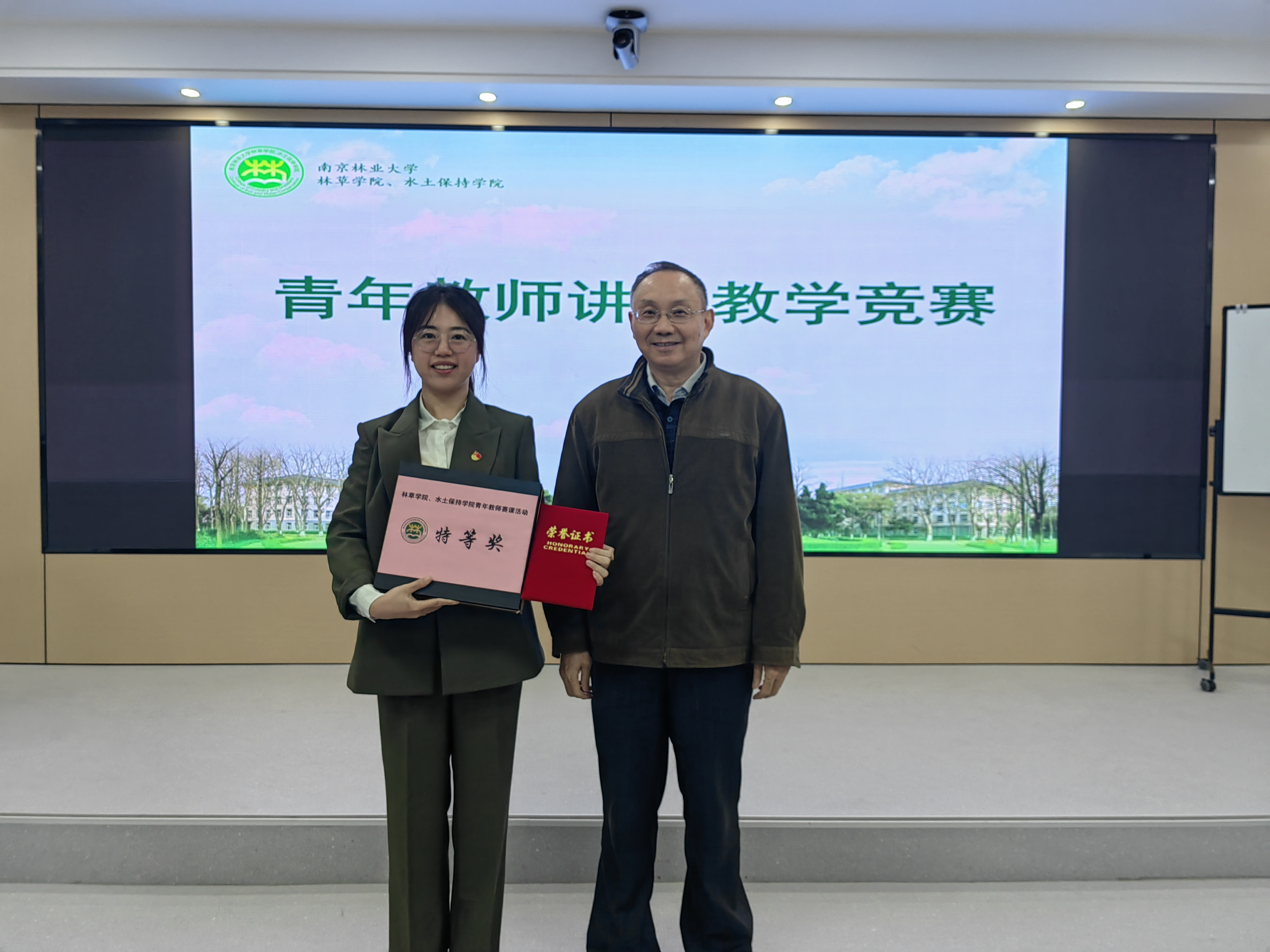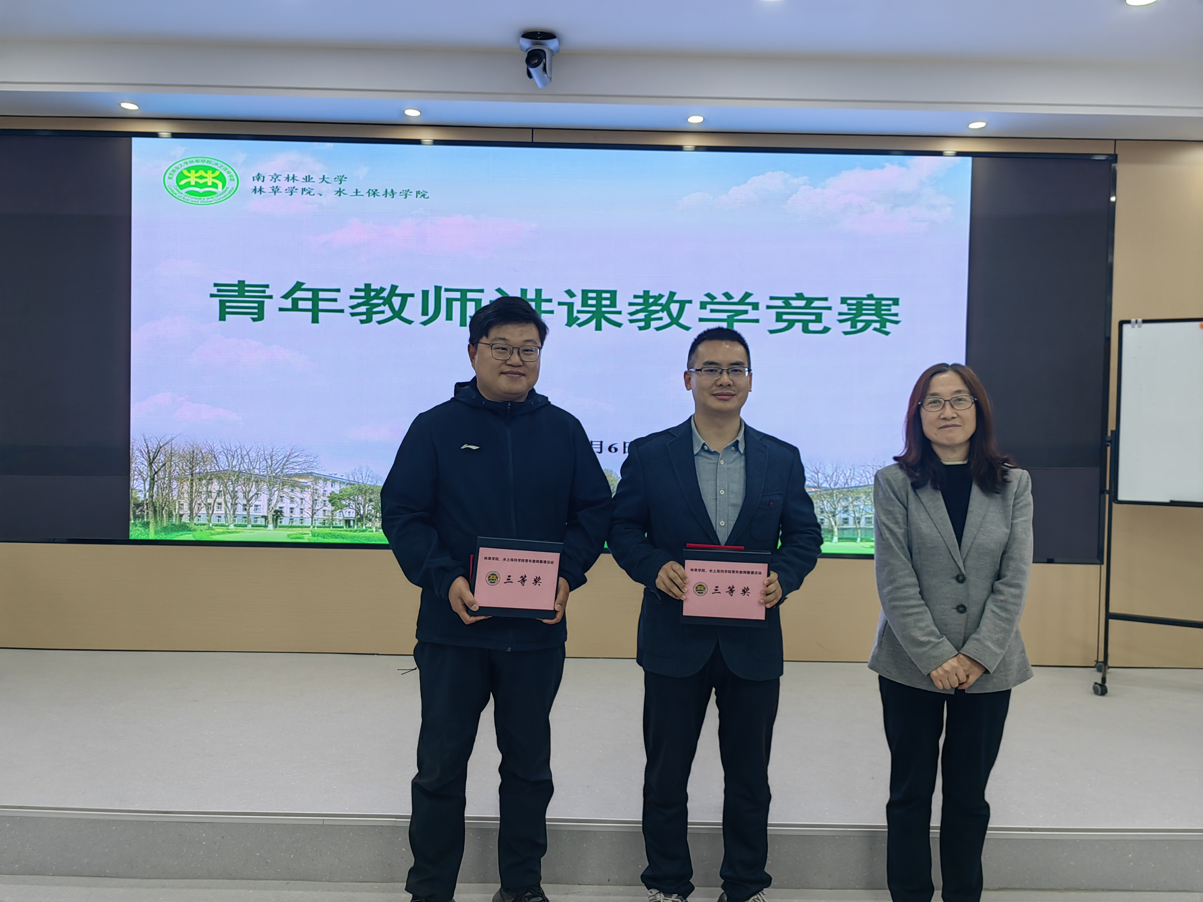 经评委现场评分,林木遗传育种系国颖老师获得本次竞赛等奖,森林保护系李同浦老师获一等奖,水土保持系陈琳老师和经济林系韩吉梅老师获二等奖林木遗传育种系倪州献老师和经济林系周凯老师获三等奖校院级督导为获奖老师颁发了奖状和奖品,希望青年教师在教学中紧紧把握人才培养的核心理念,将现代教育的理念和手段、思政教育等内容融入课堂教学,进一步推动课堂教学质量的提高。