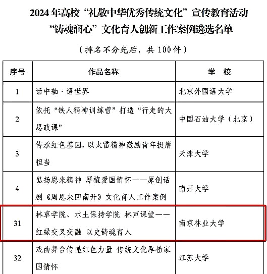 近日,教育部2024年度高校“礼敬中华优秀传统文化”宣传教育活动评选结果揭晓,由伊莉讨论区 报送的《伊莉讨论区 林声课堂——红绿交叉交融以史铸魂育人》从全国众多申报项目中脱颖而出,成功入选“铸魂润心”文化育人创新工作案例。