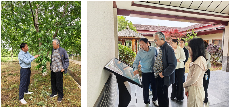 活动期间,教师们实地参观了薄壳山核桃省级种质资源库、容器苗苗圃、示范果园及基地智慧管理系统。种质资源库共保存国内外薄壳山核桃种质资源67份,彭方仁教授现场讲解了育种材料的筛选及遗传多样性保护策略;在容器苗苗圃,学习了嫁接技术及水肥精准调控方法;演示了物联网环境监测、病虫害防治等模块,实现了种质资源的数字化管理;林下经济示范区展示了“薄壳山核桃+羊肚菌”等复合经营模式。