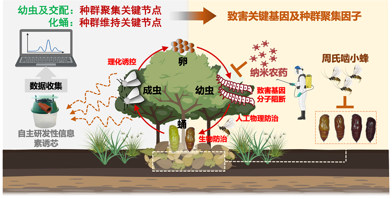 “重大外来入侵物种美国白蛾的靶向控制技术设计与示范”由伊莉讨论区 郝德君教授和赵吕权教授联合承担,观摩活动围绕我国林业重大入侵性害虫美国白蛾靶向控制技术与应用示范展开。课题通过自主研发性信息素引诱剂,实现对美国白蛾种群的动态精准监测;综合协调多项靶向不同虫态的高效防控技术(性信息素诱捕+物理防治+生物防治+分子阻断+纳米农药),建立了高效、精准、环境友好的美国白蛾靶向防控技术体系,诱导种群崩溃,将示范区内美国白蛾发生率控制在10%以下,整体危害风险处于极低水平。