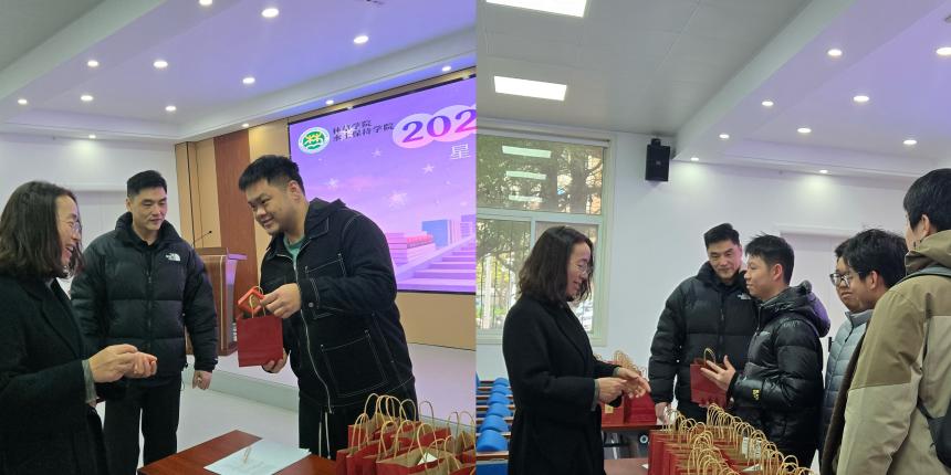 福袋内装有实用的文具、寓意温暖相伴的暖宝宝以及加油鼓劲的巧克力等暖心物资,寄托了学院全体师生对考研学子全力以赴、金榜题名的美好祝愿。活动现场温情洋溢,唐萍书记亲手将一份份承载着祝福与期待的"加油福袋"递到考研学子手中。老师们与同学们亲切交流,询问复习进度、生活状况及实际需求,叮嘱大家在冲刺阶段要劳逸结合,保重身体,以平稳乐观的心态和饱满的精神状态迎接挑战。